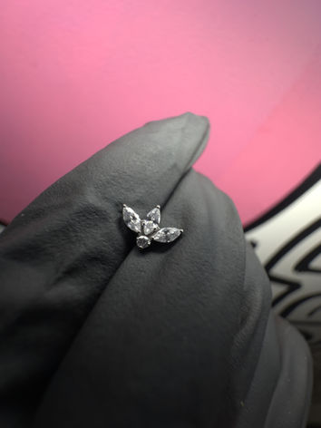 All piercings are done with titanium jewellery, which is implant grade, hypoallergenic and vastly improves healing. We do stock more elaborate jewellery (also titanium) at an additional cost. Enquire with Kim on Instagram for more information.